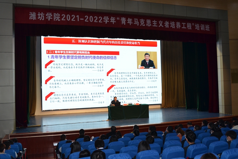 本網訊 12月21日,學校黨委書記李東為我校2021—2022學年“青年馬克思主義者培養工程”培訓班學員作學習黨的十九屆六中全會精神專題輔導報告。學生工作處、團委負責同志,全體專職團干部、234名“青馬”學員參加培訓。
