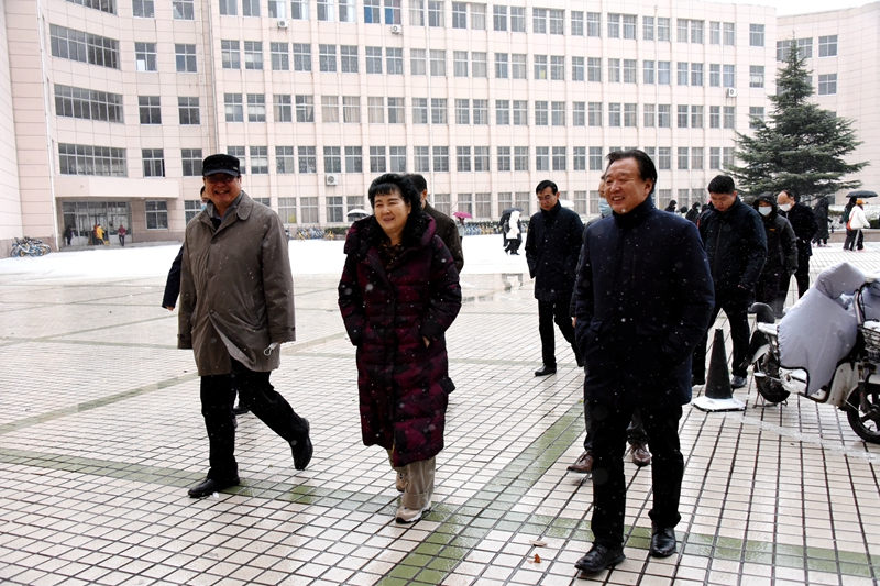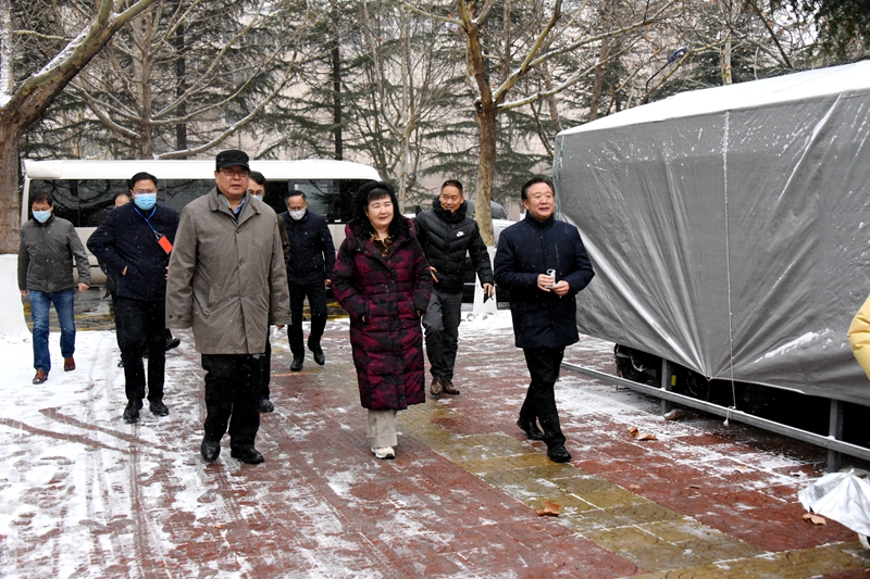 本網訊 12月24日,迎著漫天飛舞的雪花,濰坊市副市長李平帶領相關部門負責同志來校檢查2022年碩士研究生招生考試考前準備工作,聽取學校準備情況匯報,并進行實地查看。校黨委書記李東,校長馮濱魯,副校長趙光強陪同檢查。