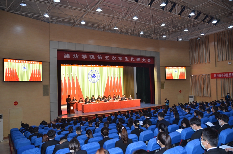 2020屆學生會執行主席張淑琪同學代表濰坊學院學生會作題為《踐行服務宗旨,勇擔時代責任,持續深化改革,為早日建成優勢特色突出的高水平應用型大學貢獻青春力量》的工作報告。郭四威同學代表第五次學生代表大會提案工作委員會作《第五次學生代表大會提案工作報告》。