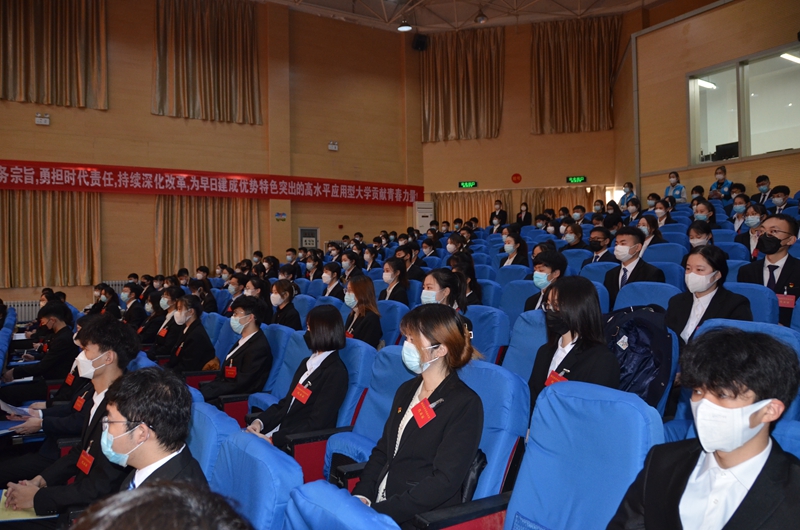 學校黨委副書記王清明代表黨委在開幕式上發表講話,對大會的順利召開表示熱烈祝賀。他充分肯定了我校學生會主動適應時代發展要求和學校改革發展形勢,團結帶領廣大青年學生,積極融入學校發展大局,為建設高水平應用型大學做出了積極貢獻。并向全體代表和同學提出了希望和要求。第一,立大志,在堅定理想信念中把握人生方向。要堅定不移聽黨話、矢志不渝跟黨走,主動將小我融入大我,忠誠履踐“請黨放心,強國有我”的錚錚誓言。第二,明大德,在錘煉品德修為中擦亮青春底色。要錘煉道德品質、增強道德定力、加強道德實踐,以嚴格標準加強自律、接受他律,努力以道德的力量去贏得人心、贏得學習和事業成就。第三,成大才,在強化磨礪修煉中練就過硬本領。要求真學問、練真本領,要重全面、求發展,要接地氣、找苦吃,在腳踏實地的實干中提高分析解決問題的能力。第四,擔大任,在保持實干奮斗中譜寫事業新篇。各級學生會組織要全面深化改革,全面從嚴治會。各位學生代表要圍繞學校發展建真言,圍繞同學需要獻良策。學生干部要接力干,干得更好,不辜負學校重托,不辜負師生信任。