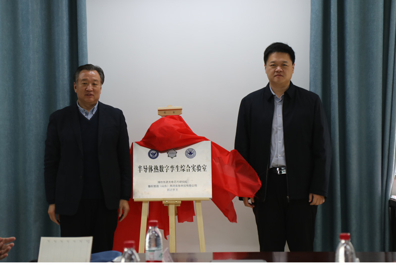 本網訊 1月21日,由濰坊先進光電芯片研究院、魯歐智造(山東)高端裝備科技有限公司與我校三方共建的半導體熱數字孿生綜合實驗室揭牌儀式舉行。學校黨委書記李東和濰城區委副書記高斌為實驗室揭牌。副校長趙光強,濰城區科學技術局黨組書記夏學軍,濰城區科學技術局局長王淑玲,濰坊先進光電芯片研究院常務副院長馮海英和魯歐智造(山東)高端裝備科技有限公司董事長兼總經理羅亞非等出席儀式。