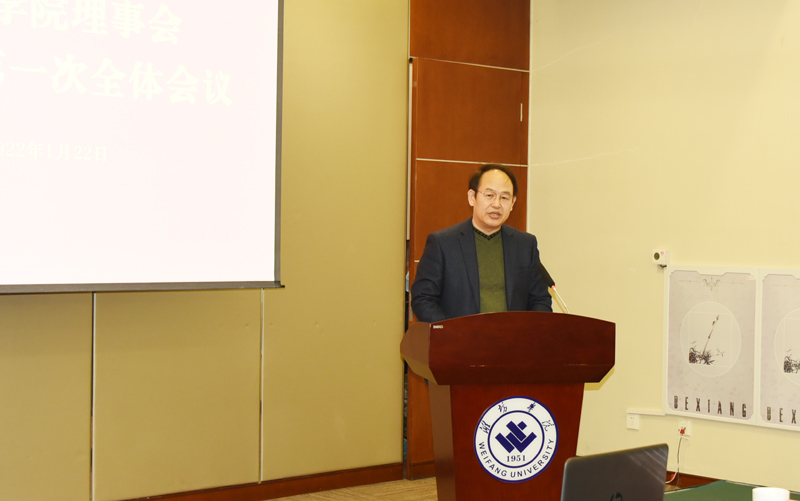 第一屆理事會秘書長曲振國向大會作會議籌備工作情況匯報并宣讀了《濰坊學院第二屆理事會建議名單》。