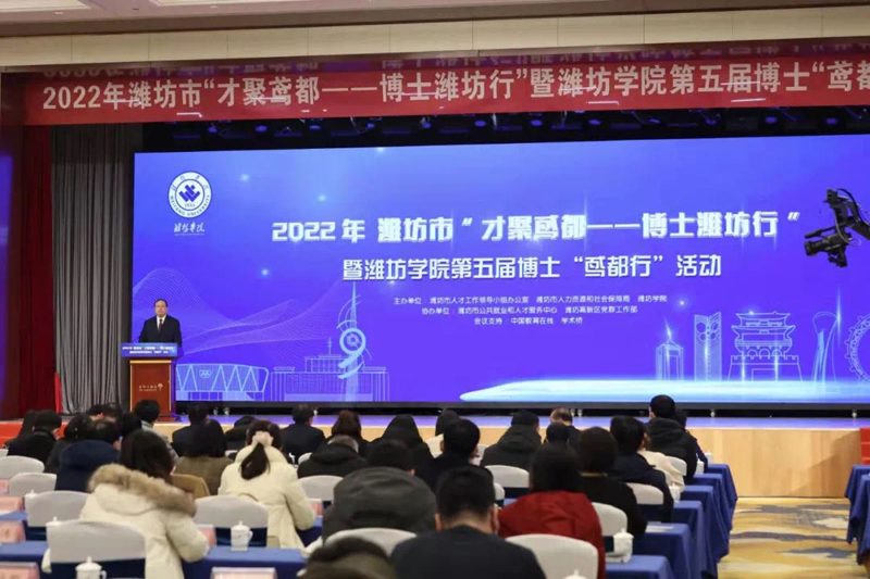 本網訊 1月22日—23日,2022年濰坊市“才聚鳶都——博士濰坊行”暨濰坊學院第五屆博士“鳶都行”活動舉辦。22日上午舉行開幕式,來自海內外242所高校的370余名優秀博士通過線上線下方式參加活動,線上直播互動人數超過18萬人次。