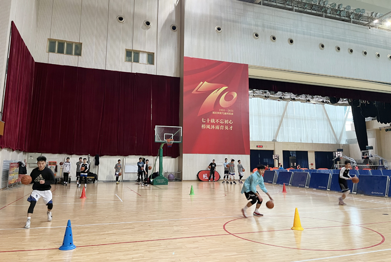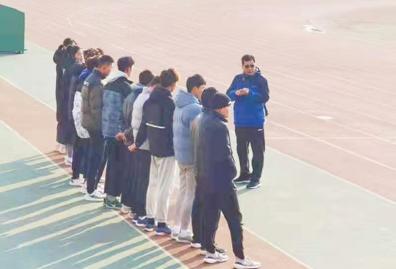 記者看到,足球場上,女足教練陳茂戰帶領隊員們剛做完熱身,馬上轉入球性訓練;男足在高歡老師的帶領下,小伙子們正在寒冬下進行著傳球練習;風雨球場內,田徑隊教練張恒亮、王寧正帶領學生在做身體素質訓練;體育館里,男籃的小伙子們正在美女教練王雨的帶領下分組對抗訓練。