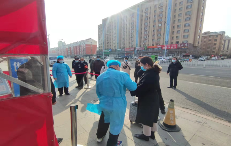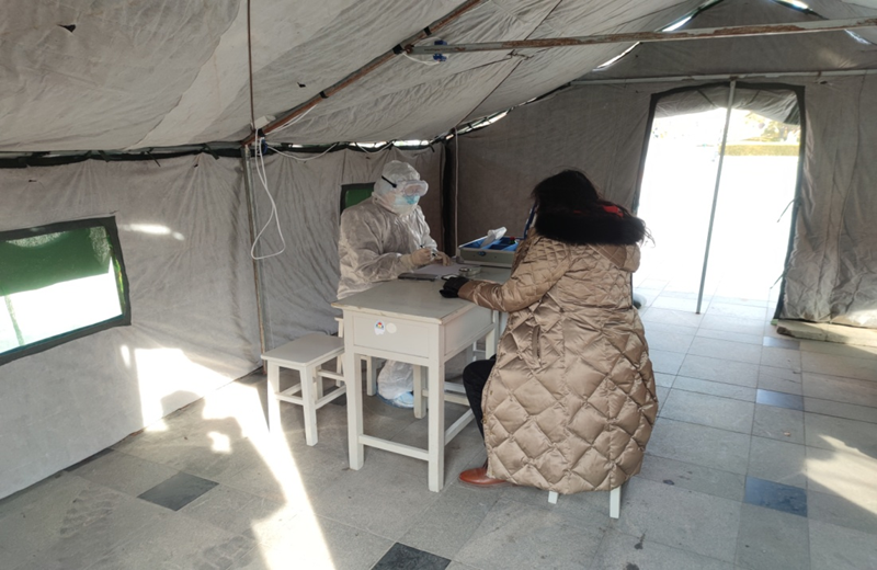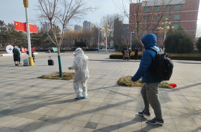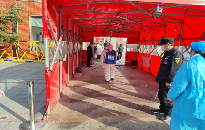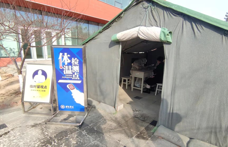 體溫測量時發現第二個學生體溫達37.8℃,保安指引其到臨時留觀點,由校醫重測體溫,體溫38℃,詢問病史初步篩查,啟動應急處置。聯系專車,送發熱學生到定點醫院(濰坊醫學院附屬醫院)進行核酸檢測。