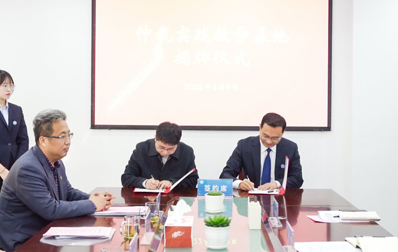 儀式上,苗金春與高強簽署了《教學實踐基地協議書》。與會人員還參觀了學習實踐習近平法治思想仲裁基地,聽取了濰坊仲裁近年來的發展情況介紹。