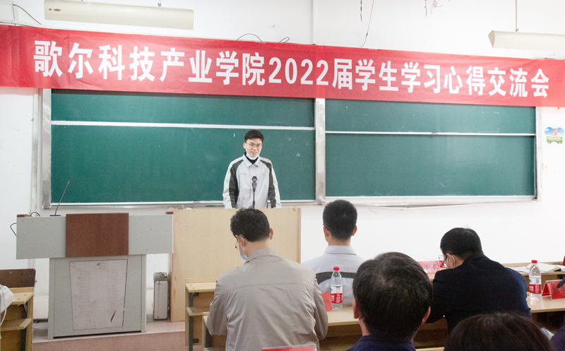 會上,歌爾科技產業學院2022屆學生3名學生代表,從思想轉變、學習內容、學習方式以及個人感悟等方面進行了發言,會議現場氛圍十分熱烈。