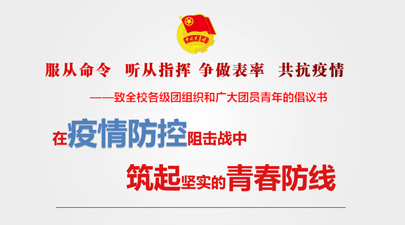 疫情防控,人人有責。同學們,讓我們立刻行動起來,同舟共濟、同心協力,全力參與和支持疫情防控工作;讓我們聽從安排、服從管理,遵守校園疫情防控各項要求;讓我們團結一致,共克時艱,作出青春表率、挺起青春擔當,在疫情防控阻擊戰中筑起堅實的青春防線!