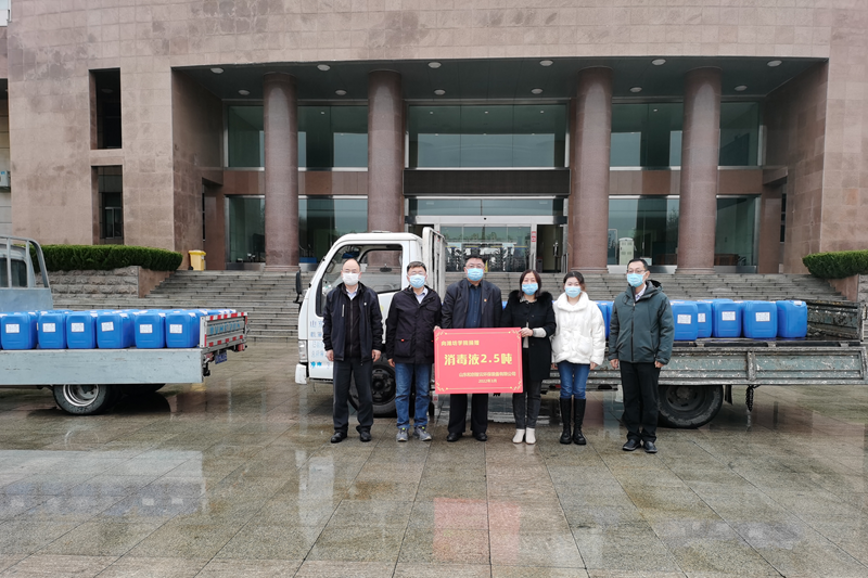 本網訊 3月12日下午,滿載2.5噸消毒液的卡車駛入我校。“只要母校需要,我們隨時支援,保證供應”,我校校友、山東和創智云環保裝備有限公司董事長王培超在捐贈現場表示。