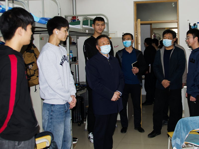 在人合樓,李東一行與輔導員和學工干部進行了座談。在5號學生公寓、弘德書院,李東同輔導員深入交流,實地查看駐守的輔導員和學生的工作學習生活情況。每到一處,李東都詳細詢問老師們住宿條件是否滿意、伙食是否可口,詢問學生們飯菜價格是否合理、網課學習是否順暢、有什么需要解決的問題和困難。