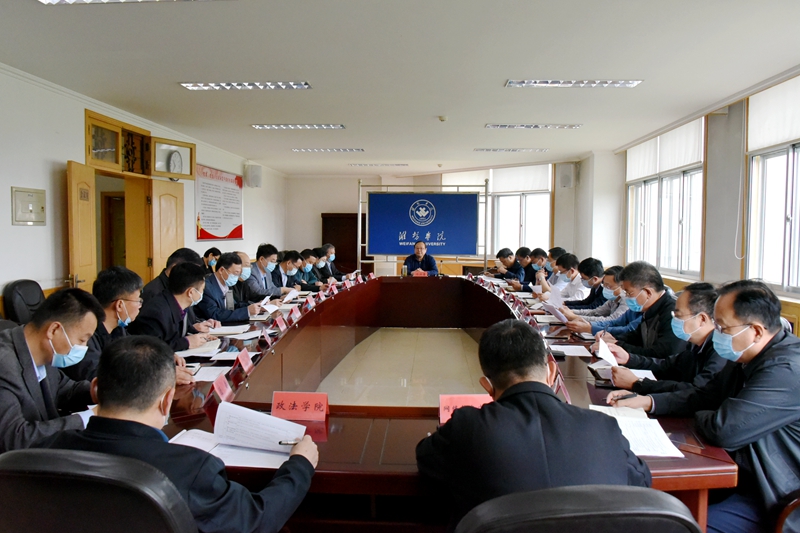 馮濱魯就扎實做好學校法治重點工作講了三點意見:一是國家對法治的重視達到空前高度,作為依法治國重要一環,依法治校的重要性不言自明,要進一步提高政治站位,嚴格依法治校、依法管理;二是在學校黨委高度重視下,學校法治建設成效顯著,同時為濰坊市法治建設貢獻了力量,要進一步將法治工作融入學校工作全過程,規范學校辦學行為,保障師生合法權益;三是要進一步在提高法治意識、健全法治制度機制、強化法治風險閉環管理、加強法治宣傳教育等方面下功夫,努力開創學校法治工作新局面。