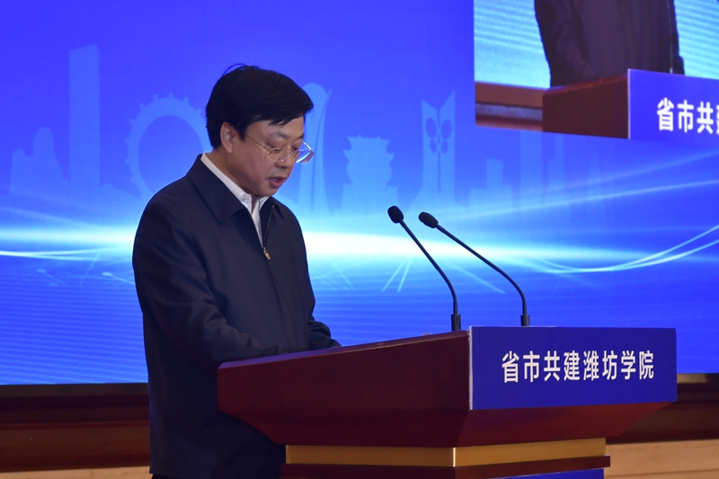 馮繼康在講話時指出,省委、省政府高度重視高等教育事業改革發展,全面啟動高水平大學和高水平學科建設,推動山東由高等教育大省向高等教育強省轉變。此次省市共建濰坊學院,是省教育廳貫徹落實省委、省政府工作要求的具體體現,也是濰坊市與濰坊學院校地合作、校城融合的一次深化和升級,體現了濰坊市委、市政府貫徹落實黨中央決策部署和省委工作要求,推動高等教育內涵式高質量發展的強烈責任擔當、深厚教育情懷和務實工作作風。通過省市共建,濰坊市委、市政府將濰坊學院納入全市經濟社會發展大局,在政策、資金、土地、人才等方面給予學校大力支持,必將為濰坊學院高質量發展提供堅強保障。省委教育工委、省教育廳將同濰坊市一道,加大對濰坊學院的政策傾斜和支持力度,幫助濰坊學院在學科專業、人才培養、科技創新等方面加強建設,推動濰坊學院早日建成高水平應用型大學。馮繼康要求,濰坊學院要用足用好省市共建各項政策措施,積極釋放“政策紅利”,持續放大“共建效應”,強化內涵發展、特色發展、創新發展、開放發展、和諧發展,在一流學科專業建設、高層次科研創新平臺培育創建、高素質應用型人才培養、精準服務地方等方面下更大功夫、爭取更大成績,努力當好濰坊城市發展的“催化劑”和“助推器”,為濰坊現代化品質城市建設貢獻高等教育力量。