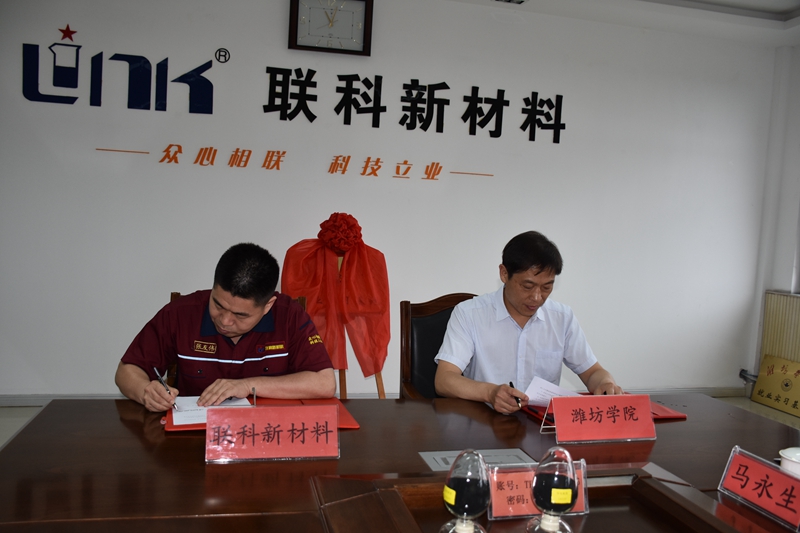 在臨朐,聯科新材料、乾華塑膠、遠豐塑膠等3家校友企業參加了座談,聯科新材料總經理張友偉,乾華塑膠董事長、遠豐塑膠董事長、我校化學化工與環境工程學院1978級校友劉建遠分別介紹了企業情況。王清明介紹了濰坊學院的情況,重點介紹了學校在推動畢業生就業工作過程中的痛點。他指出,在學校向應用型本科高校轉型過程中、在今年這個黨和國家歷史進程中特殊意義的年份里必須做好畢業生就業工作的背景下,校企合作尤為關鍵,希望校友企業與學校在人才共享、科技開發等方面加強合作。王清明還介紹了省、市為促進畢業生就業對增加校招崗位的政策支持。王清明和馬茜華代表學校征求了企業對學校人才培養的意見。聯科新材料執行董事、我校化學化工與環境工程學院1985級校友陳有根表達了對母校的良好祝愿,希望學校對學生加強就業指導和生涯規劃,在塑造畢業生正確的就業觀方面更加著力。座談后,王清明與陳有根為實習基地揭牌,化學化工與環境工程學院負責同志分別與張友偉、劉建遠簽署了共建就業實習基地協議。