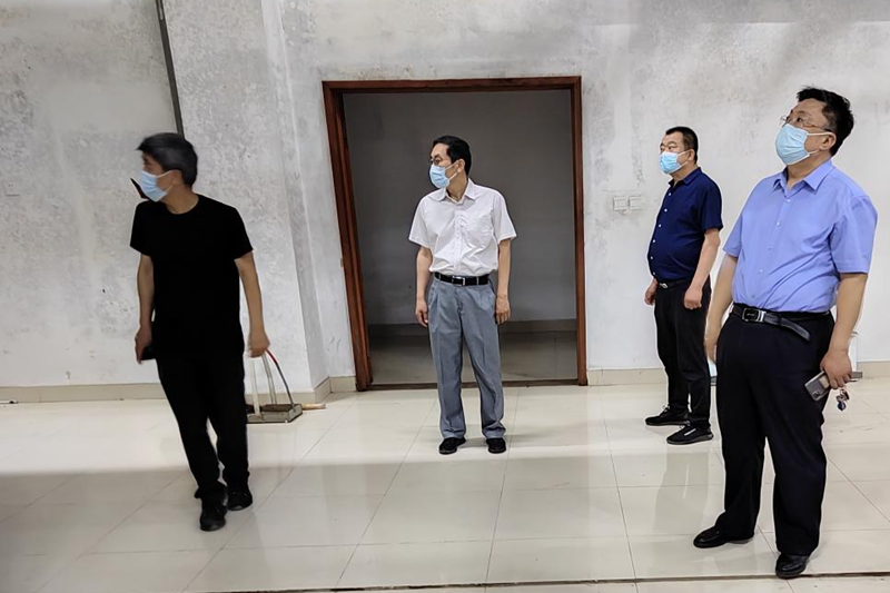 本網訊 6月6日上午,學校副校長王旭升就學生公寓空調安裝項目到體育館配電室對用電安全工作進行調研指導,后勤服務處主要負責同志陪同。