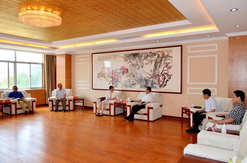本網訊 6月8日,學校黨委書記李東會見山東七維新材料有限公司負責人一行,就校企合作、學生就業等工作進行座談交流。合作發展處、化學化工與環境工程學院相關負責人參加活動。