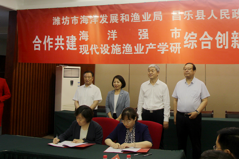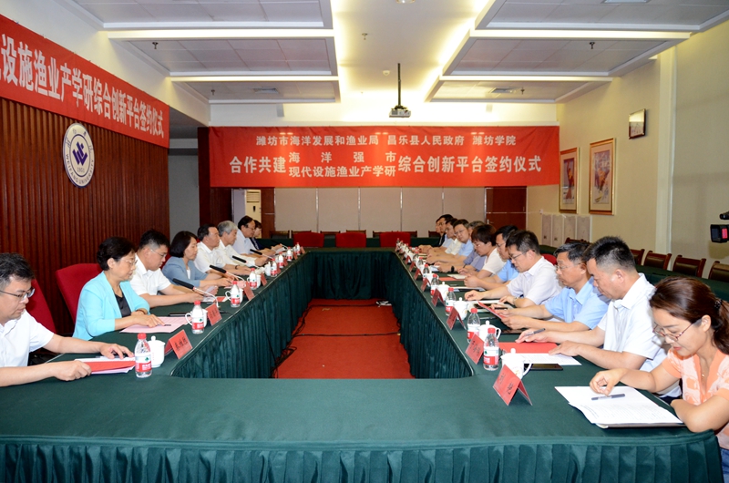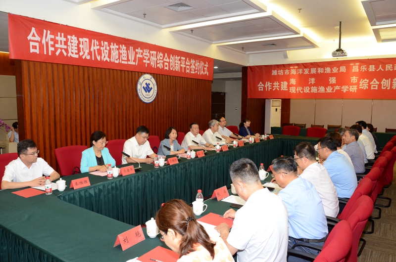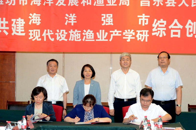 本網訊 6月10日,我校與濰坊市海洋發展和漁業局、昌樂縣人民政府合作共建的海洋強市綜合創新平臺及現代設施漁業產學研綜合創新平臺簽約儀式在體育館會議室舉行。我校黨委書記李東,黨委副書記、校長馮濱魯,黨委委員、副校長馬茜華,黨委委員、組織部部長李連成,濰坊市海洋發展和漁業局黨組書記、局長徐瑩,昌樂縣委書記王驍,昌樂縣委常委、組織部部長于勇浡出席簽約儀式。儀式由馬茜華主持,馮濱魯、徐瑩、于勇浡分別致辭。濰坊市海洋發展和漁業局黨組成員、副局長朱永紅與我校生物與海洋學院黨總支負責同志代表雙方簽署海洋強市綜合創新平臺合作協議,朱永紅、昌樂縣副縣長秦維勝、生物與海洋學院黨總支負責同志代表三方簽署現代設施漁業產學研綜合創新平臺合作協議。