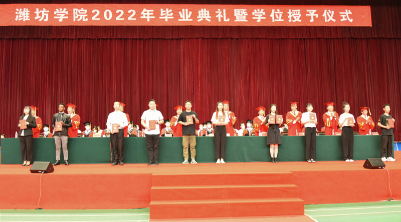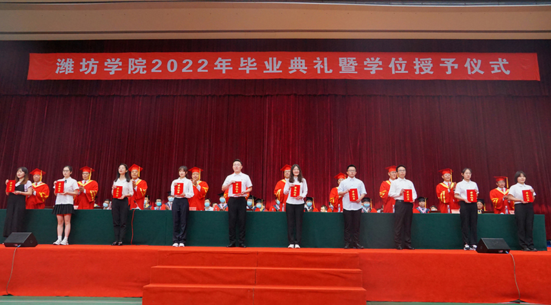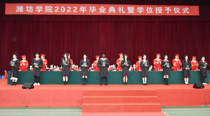 典禮在雄壯的國歌聲中拉開帷幕。王清明宣讀關于表彰2022屆優秀畢業生的通報,趙光強宣讀準予畢業、授予學士學位的決定。主席臺領導為畢業生代表頒發畢業證書,授予學位證書并撥穗合影。