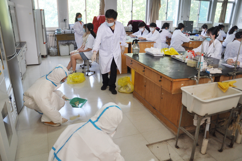 本次演練的項目是學生在做生物實驗過程中,不慎發生大腸桿菌泄漏事件的安全處置。事故發生后,指導老師第一時間進行了專業處理,并逐級上報,在保衛處、校醫院等部門的指導與協助下,得到了及時迅速妥善處理。