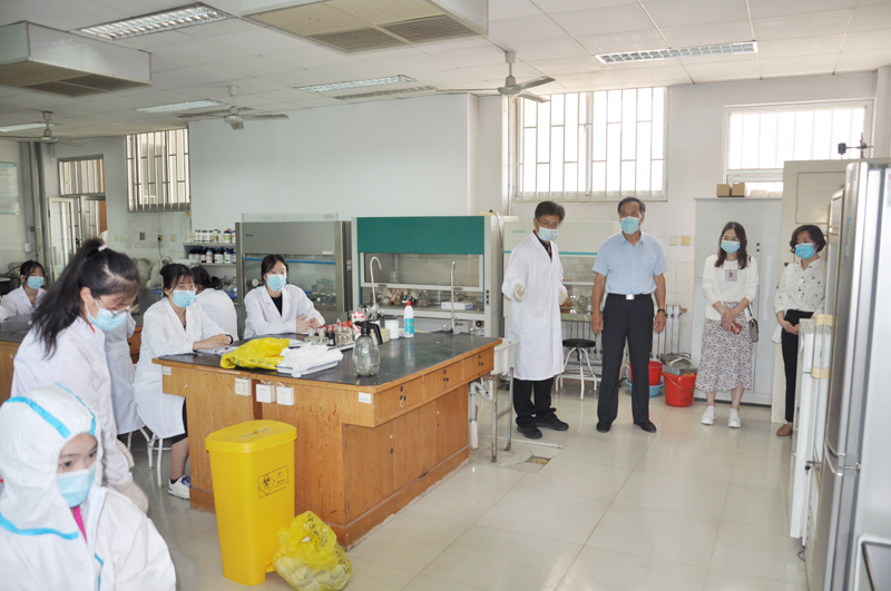 本網訊 為進一步貫徹落實全國高等學校實驗室安全工作會議精神,提高實驗室突發事件的應急處置能力,6月15日下午,學校在3號教學樓進行了實驗室安全微生物泄漏事故應急演練,副校長朱猷武到場觀摩指導,教務處、安全保衛處、校醫院、生物與海洋學院、種子與設施農業工程學院負責人、相關人員及學生代表40余人參加了演練。