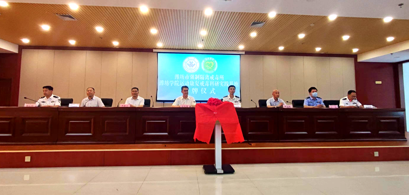 濰坊市強制戒毒隔離所所長魏長增介紹了濰坊市強制隔離戒毒所的基本情況。體育學院負責同志介紹了學校和學院的基本情況,強調了立足地方,服務地方的辦學理念。趙光強與山東省戒毒局政委史延河為濰坊學院運動戒毒康復科研實踐基地揭牌。濰坊學院運動康復戒毒科研實踐基地的建立,是我校體育學院對外交流、服務地方在新領域取得的新突破,期待合作雙方在互惠互利、合作共贏的基礎上取得豐碩的成果。