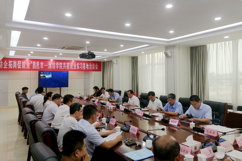實地走訪后,“訪企拓崗促就業”昌邑市——濰坊學院共建就業實習基地洽談會在昌邑經濟開發區管委會召開,李玉祥和李東分別致辭。李玉祥對李東一行表示熱烈歡迎,介紹了昌邑的基本情況。他表示昌邑是溴鹽之鄉、絲綢之鄉、果木之鄉,也是江北唯一的一個華僑之鄉,以溴鹽資源優勢為基礎的昌邑經濟開發區產業結構以化工、制藥為主。李玉祥表達了與濰坊學院在共建產業學院、科技開發、畢業生就業等方面加強合作的愿望。李東在致辭中表示,濰坊學院是濰坊人民自己的大學,立足濰坊、服務地方經濟社會發展是濰坊學院天然的使命。李東說,濰坊學院擁有完善的學科門類、比較雄厚的師資力量、辦學水平得到社會認可,以“省市共建”簽約為標志高水平應用型大學建設、沖擊碩士點、拓展辦學空間等三件大事進入了新的發展階段。李東指出,學校已經匯聚了一批人才、有比較明顯的智力優勢、有能力為地方為企業做一些事情,濰坊學院學科門類優勢與昌邑市的發展優勢有很好的融合度,有著廣闊的合作空間。