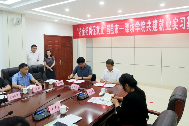 化學化工與環境工程學院黨政負責同志分別和與會企業負責人簽訂就業實習基地建設合作協議。李東為簽訂就業實習基地建設合作協議的11家企業授“濰坊學院就業實習基地”牌。
