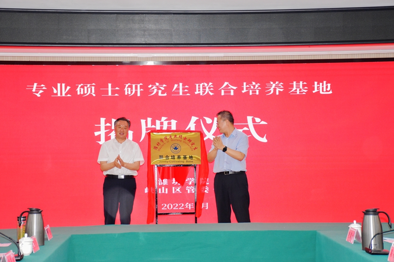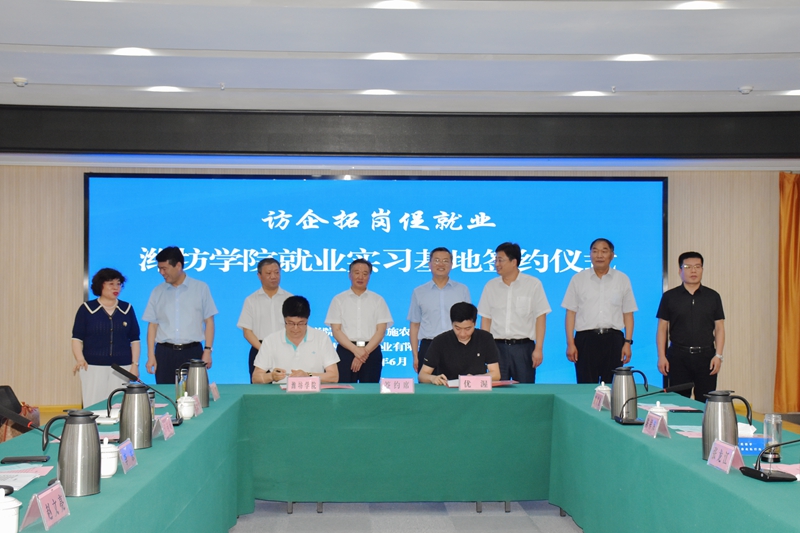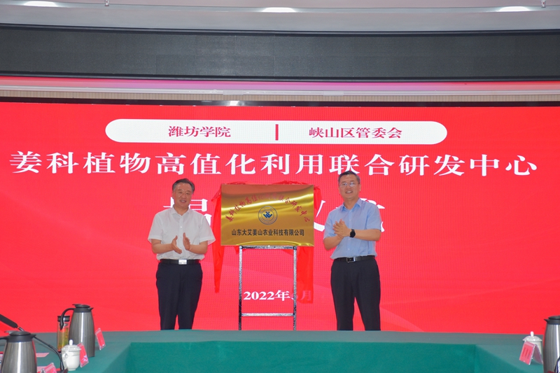 企業代表大艾姜山農業科技有限公司負責人作了校企合作典型發言。科研處主要負責同志與大艾姜山農業科技有限公司代表簽約了共建聯合研發中心的合作協議。種子與設施農業工程學院黨總支負責同志代表學校與企業代表簽約就業實習基地。李連成向優渥有機農業有限公司等4家企業代表集中授牌濰坊學院就業實習基地。李東與張龍江共同為校企共建“姜科植物高值化利用研發中心”和“專業碩士研究生聯合培養基地”揭牌。