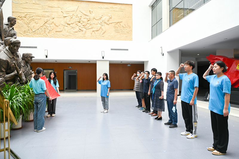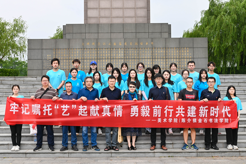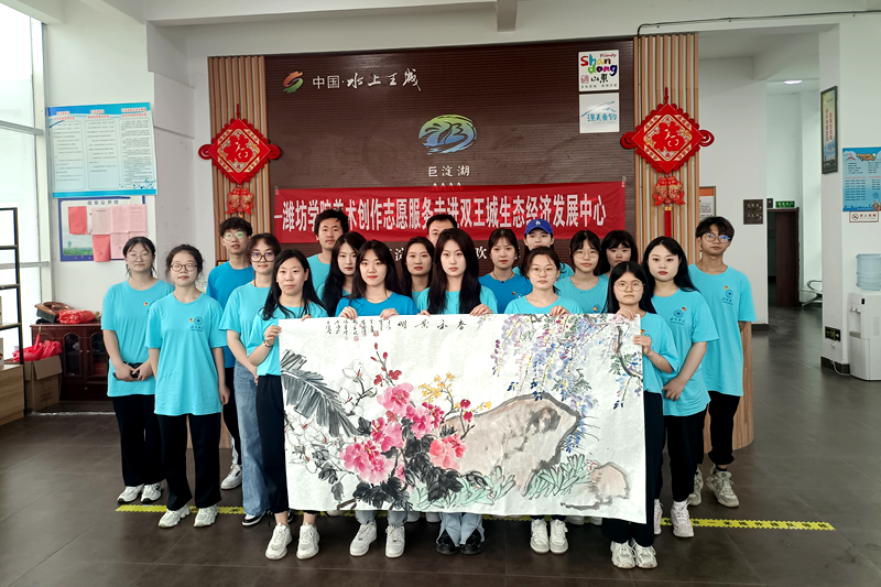 6月29日,濰坊學院美術學院(陳介祺金石書法學院)師生藝術創作志愿服務隊赴壽光市開展“牢記囑托‘藝’起獻真情,勇毅前行共建新時代”美術創作志愿服務活動。在壽光市雙王城生態經濟發展中心和寇家塢四村新時代文明實踐站,美術學院的師生們分別開展了國畫創作和書法創作,并將國畫和書法作品贈送給當地居民。志愿服務活動結束后,美術學院參與志愿服務的師生赴牛頭鎮抗日武裝起義陳列館進行現場教學,細心聆聽講解,認真觀看展品,面對鮮紅黨旗,全體師生黨員高舉右拳,重溫入黨誓詞。