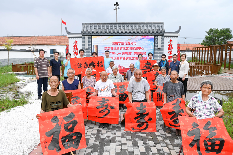啟動儀式結束后,濰坊學院音樂學院志愿服務隊“音樂大篷車”走進壽光市“送文化”,開展了以“喜迎二十大·唱響新時代”為主題的文藝演出,為在壽光養老服務集團生活的農村五保戶老人們演上精心準備的文藝節目。音樂學院相關教師赴壽光市洛城街道韓家牟城村對新時代文明實踐站社區文藝團體進行了藝術培訓。演出活動結束后,音樂學院參與志愿服務演出的團員青年學生到壽光市洛城街道屯田西村倉頡漢字藝術館進行了考察學習。