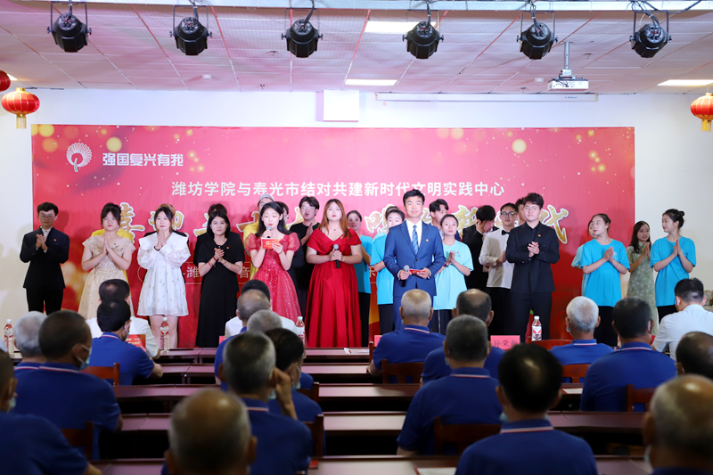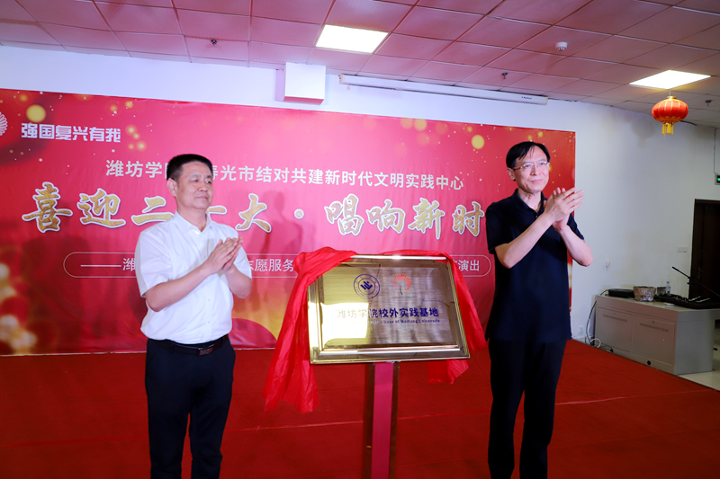 儀式上,濰坊學院黨委宣傳部相關負責同志發布結對共建新時代文明實踐中心活動項目,濰坊學院音樂學院黨總支分管負責同志與壽光市民政局黨組書記、局長孫榮新共同為“濰坊學院校外實踐基地”揭牌。