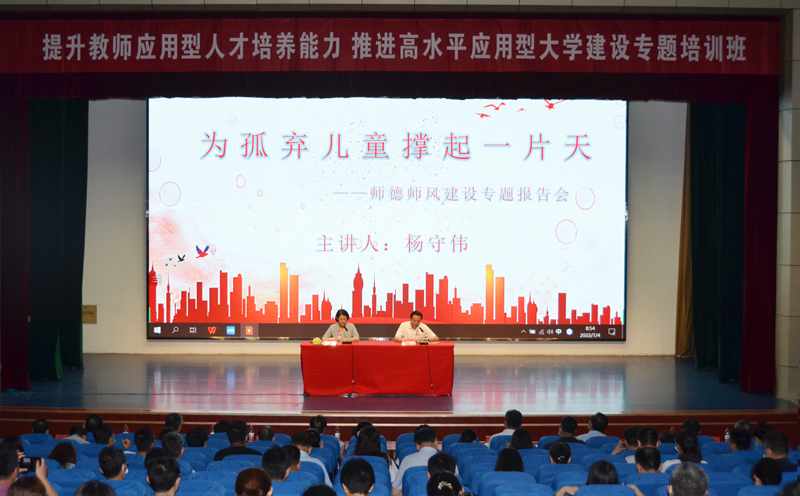 7月4日,學校邀請全國優秀共產黨員、“齊魯時代楷模”、濰坊市兒童福利院副院長楊守偉為我校教師作了題為《為孤棄兒童撐起一片天》的專題報告。楊守偉用真摯的情感和質樸的語言動情講述了自己22年如一日,無私奉獻,無怨無悔,當好孤棄兒童媽媽的感人事跡。楊守偉的事跡,在全校教師中引起強烈反響,他們紛紛表示,這是一次心靈的凈化、思想的升華、精神的洗禮,將堅守立德樹人初心,不斷涵養高尚師德,傳播正能量,傳授專業的理論知識和超高技術,努力成為學生思想和靈魂的導師。
