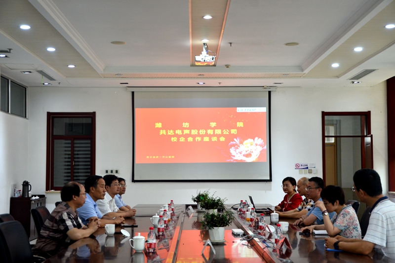 隨后,校企雙方就共建產業學院,并以產業學院為平臺推進全方位深維度校企融合等事宜進行了熱烈地討論。朱猷武對濰坊學院與共達電聲股份有限公司開啟友好合作新篇章給予了充分肯定,并基于專業領域和研發方向的高度一致,對濰坊學院物理與電子信息學院與共達電聲股份有限公司共建學科專業、共創人才培養模式寄予了展望。朱猷武表示,校企雙方在學生創新與實踐能力培養、帶動學生就業、對接企業和社會需求、促進科技成果轉化、共建專業實驗室、共申高水平項目、共建團隊共享人才等多個方面都存在巨大的可探討合作的空間,希望校企雙方共同努力,密切溝通交流,精準對接雙方需求,全力以赴推進產業學院落實落地。