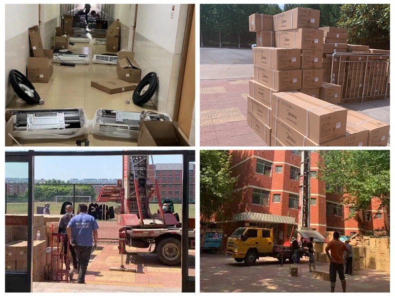 從2022年年初開始,空調正式進入安裝階段。在確保疫情防控絕對安全的情況下,施工方陸續入駐學校開始施工。學生公寓空調安裝工作領導小組一周一次調度會,協調各方施工進度,解決工作進展過程中遇到的問題。經過各方不懈努力,5月31日,安順校區554臺空調完工送電進入試運行階段。6月10日主校區大部分工作完成,6月15日通過了國家電網濰坊供電公司的驗收,于6月16日一次送電成功,全校學生公寓的空調全部進入正常運行階段。目前運行狀態良好,項目組正在進行后續的相關完善工作。
