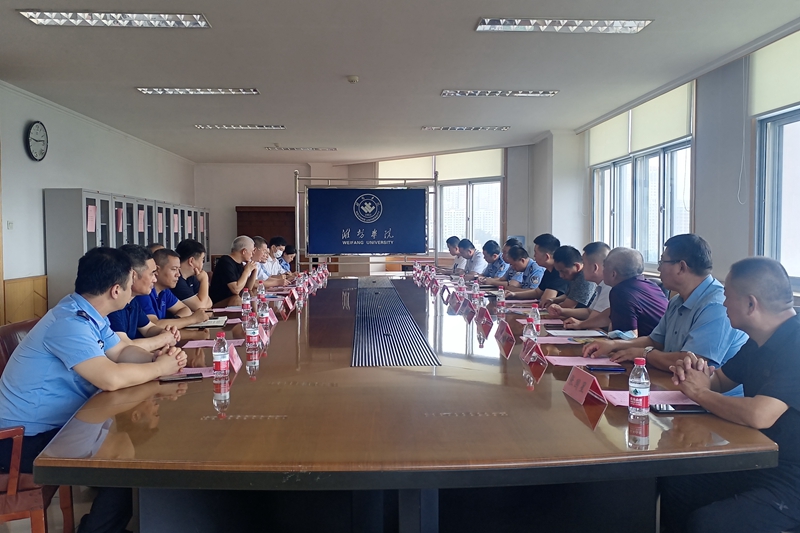 本網訊 7月5日,在濰坊市公安局、濰坊市高新區公安分局負責同志陪同下,聊城市公安局政保支隊負責同志帶領聊城大學等6所駐聊高校保衛干部,到我校參觀學習校、警共建及警務室運行工作。
