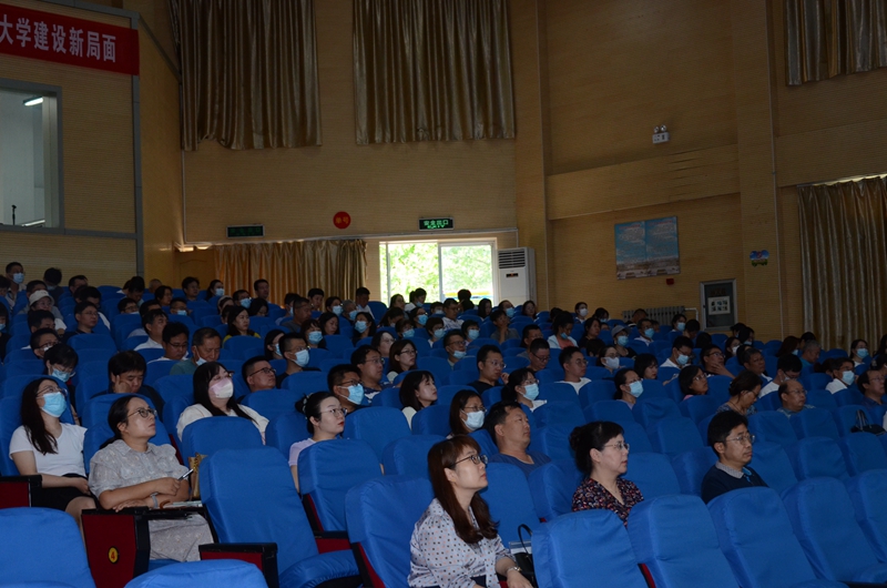 各二級學院院長和教師代表在主會場、全體教師在分會場聆聽了報告。