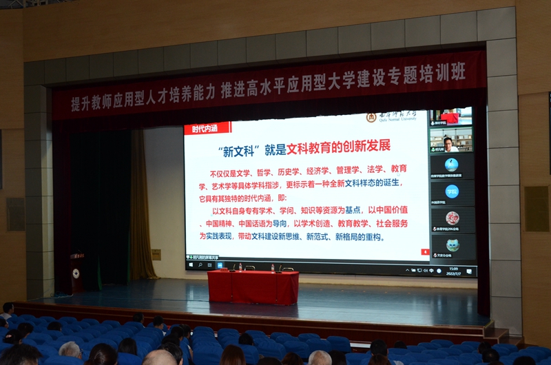 本網訊 7月7日,學校“新文科專業建設與人才培養模式改革”報告會在圖書館報告廳舉行。副校長朱猷武主持,全校人文社科類教師代表200余人在圖書館報告廳主會場、其他教師在各學院分會場聆聽報告。