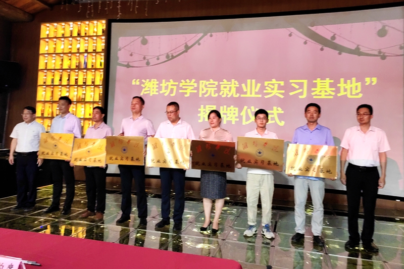活動期間,吳茵政介紹了奎文區有關人才政策,王磊介紹了奎文區經濟社會發展情況,經濟管理學院負責同志介紹了濰坊學院人才培養、學科建設、服務地方及畢業生就業的有關情況。經濟管理學院黨總支分管負責同志分別和與會的15家企業負責人簽訂了就業實習基地建設及相關教科研合作協議。單振濤與王磊共同為就業實習基地揭牌。