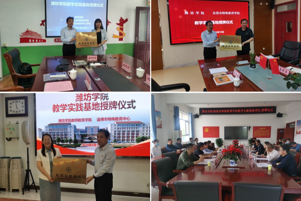 在各校座談會上,馬繼武介紹了學校和學院的辦學歷史、師資建設和發展現狀,雙方簽署合作協議,并進行“濰坊學院教學實踐基地”授牌。學院將以本次簽約授牌儀式作為高等教育和地方特殊教育資源共享、優勢互補、深化融合的新起點,進一步加強雙方在學術研究、教育教學、教師培訓等方面的交流合作,做到互惠互利、共同發展,共同提升人才培養的質量水平,為特殊教育的高質量發展奠定堅實基礎。