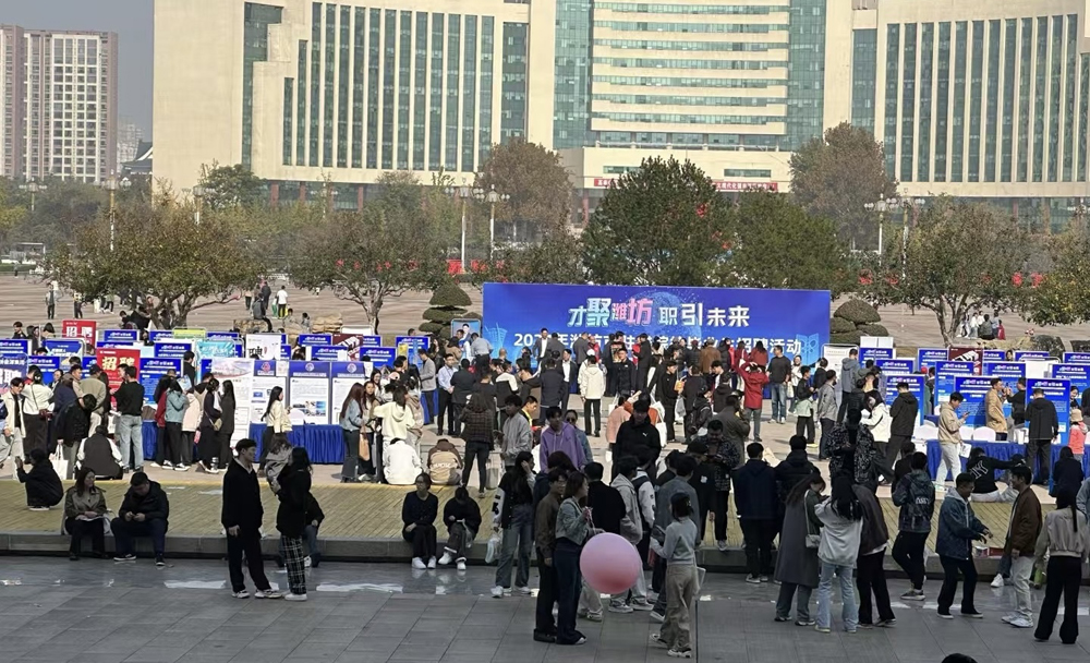 本網訊 11月2日,由濰坊市人社局組織的“才聚濰坊 職引未來”2024年濰坊市駐濰院校畢業生招聘活動,在濰坊市文化藝術中心廣場舉行,學校組織150余名畢業生參加活動。