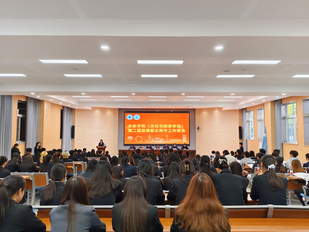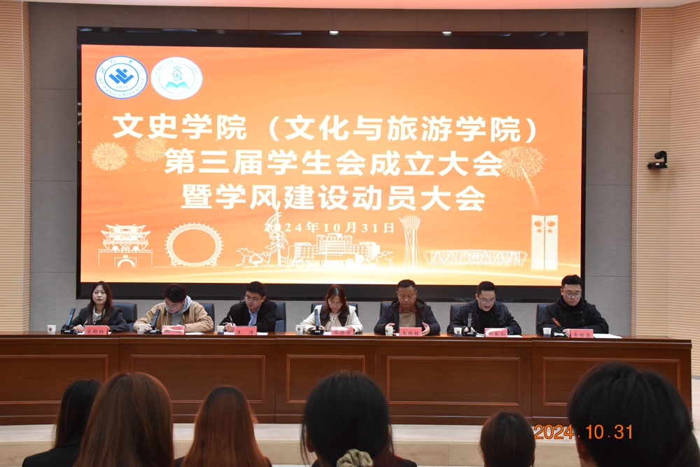 本網訊 為明確新一屆學生會的職責與目標,動員全院師生共同參與學風建設,營造良好的學習氛圍,10月31日,文史學院(文化與旅游學院)召開第三屆學生會成立大會暨學風建設動員大會。該院黨委副書記張芳芳、全體輔導員,第二屆學生會、自律委主席團成員,第三屆學生會全體成員,以及校院各團學組織主席、負責人160余人參加會議。