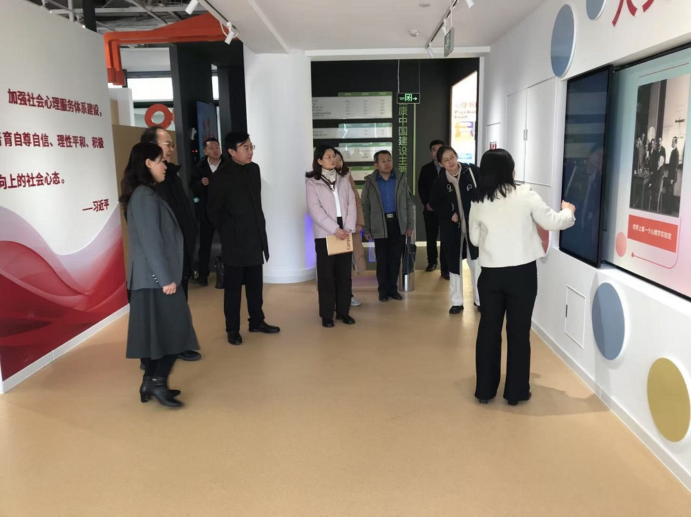會前,調研組實地考察了職工心理健康促進中心的動態心理學史長廊、腦機接口體驗區等特色功能區,現場體驗了相關設施。