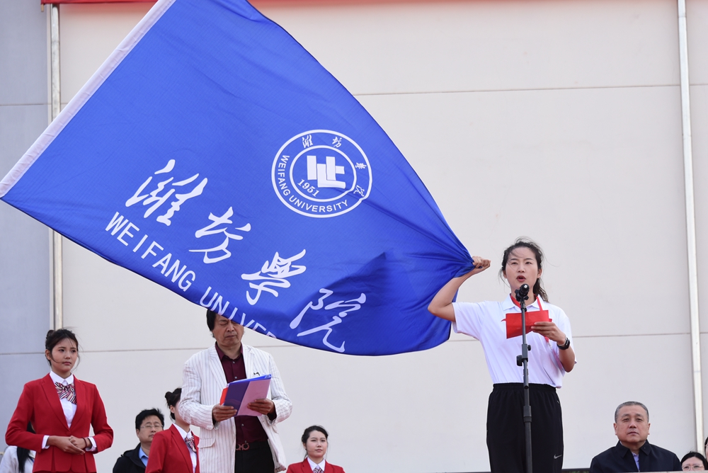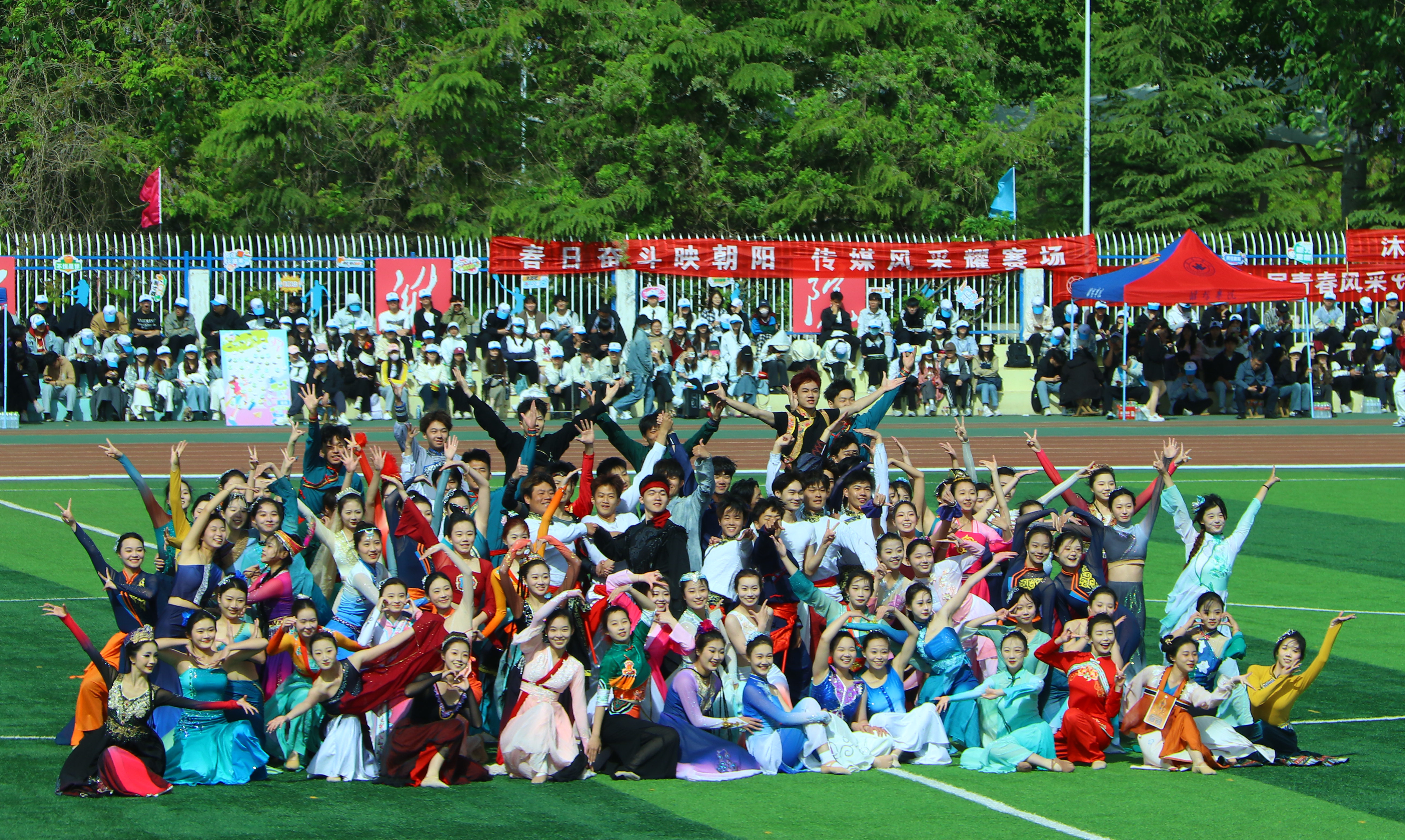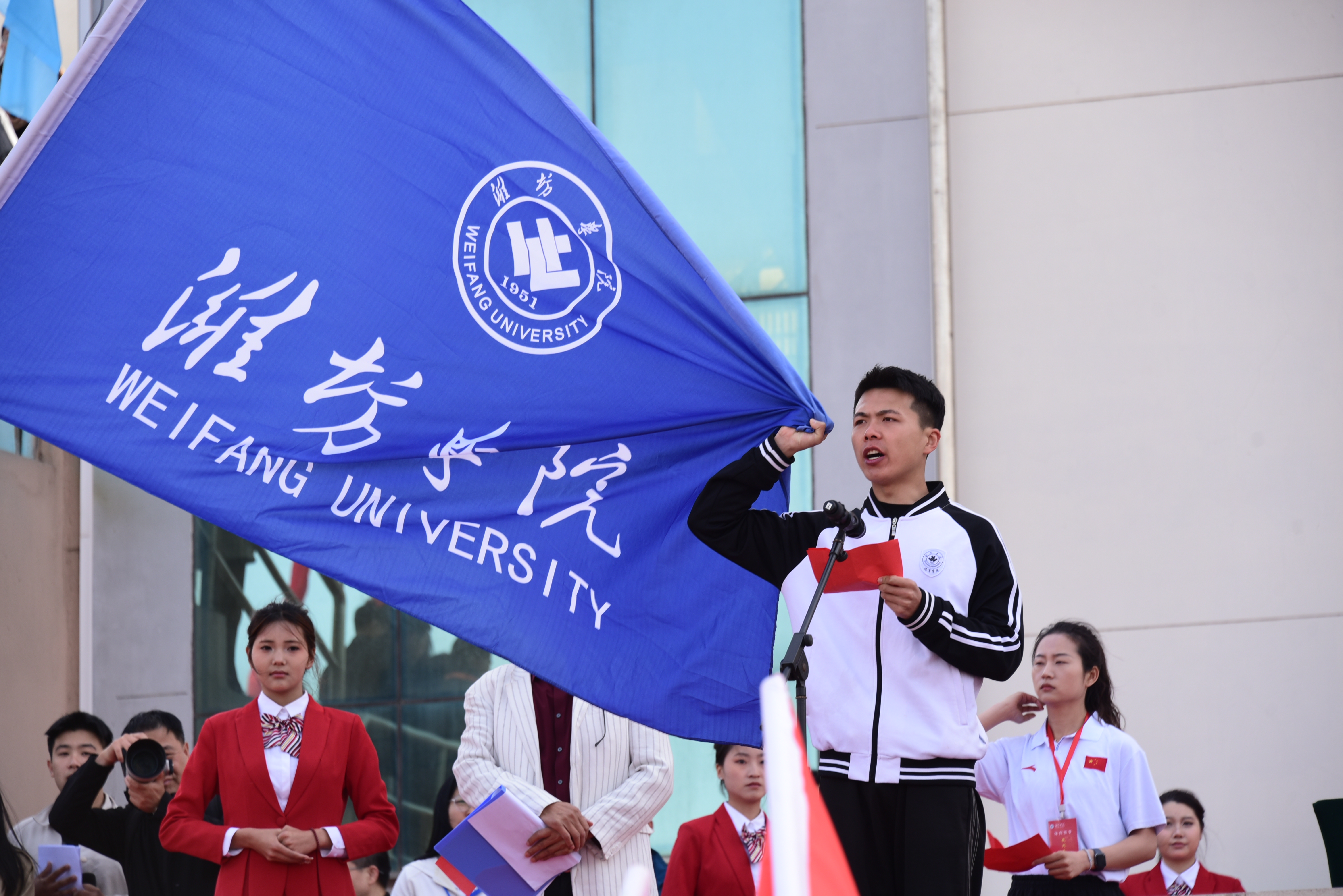體育學院帶來了花樣跳繩表演《繩牽你我,眾志齊心》,個人炫技、雙人配合、集體方陣,創意層出不窮。19個二級學院的學生代表組成方隊進行團體操《濰院·綻放》展演,展現濰院學子昂揚向上的青春風貌。音樂與舞蹈學院的節目《庫瑪拉》展現多元文化交融的獨特魅力,《站在草原望北京》傳遞著青年學子的家國情懷。