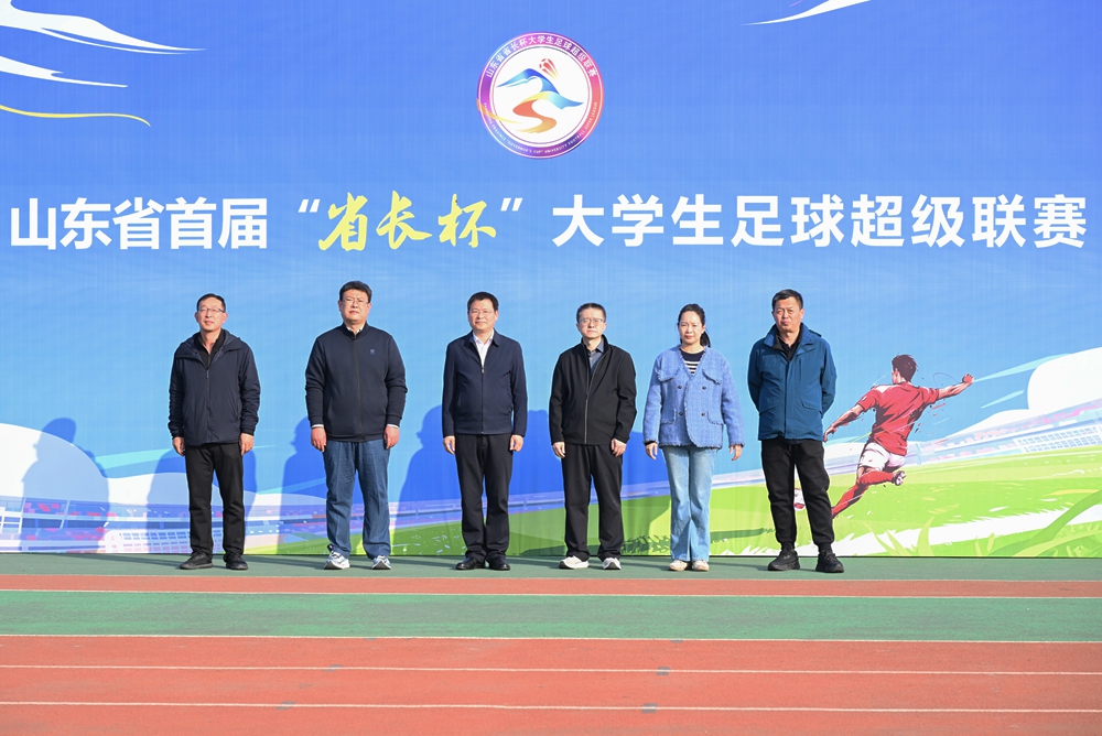 本網訊 11月11日,2025年山東省“省長杯”大學生足球超級聯賽男子乙組比賽在學校田徑場舉行。學校黨委委員、副校長任立春出席活動。