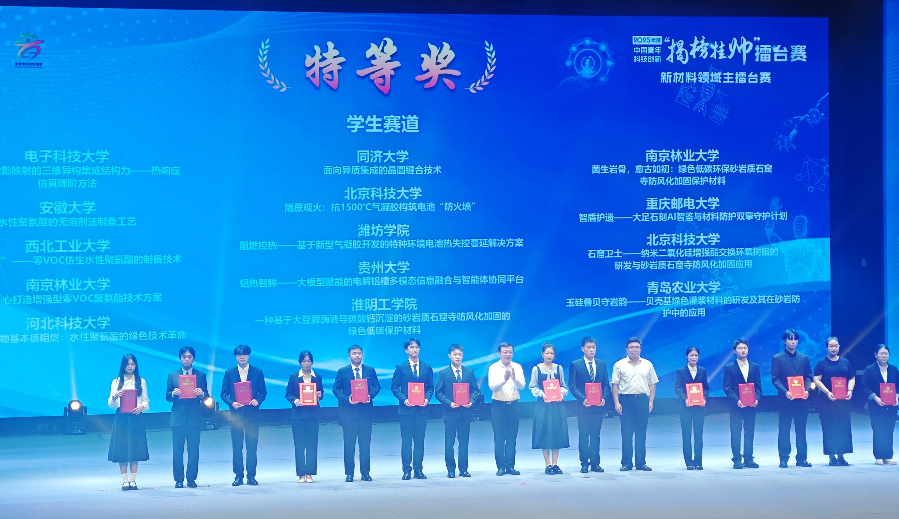 9月、10月,在第十九屆“挑戰杯”全國大學生課外學術科技作品競賽“揭榜掛帥”專項賽“種業科技創新領域”“新材料領域”“人工智能領域”擂臺賽中,我校學生共獲獎8項,其中特等獎4項(擂主1項),學生特等獎獲獎數量居全省高校第一名。