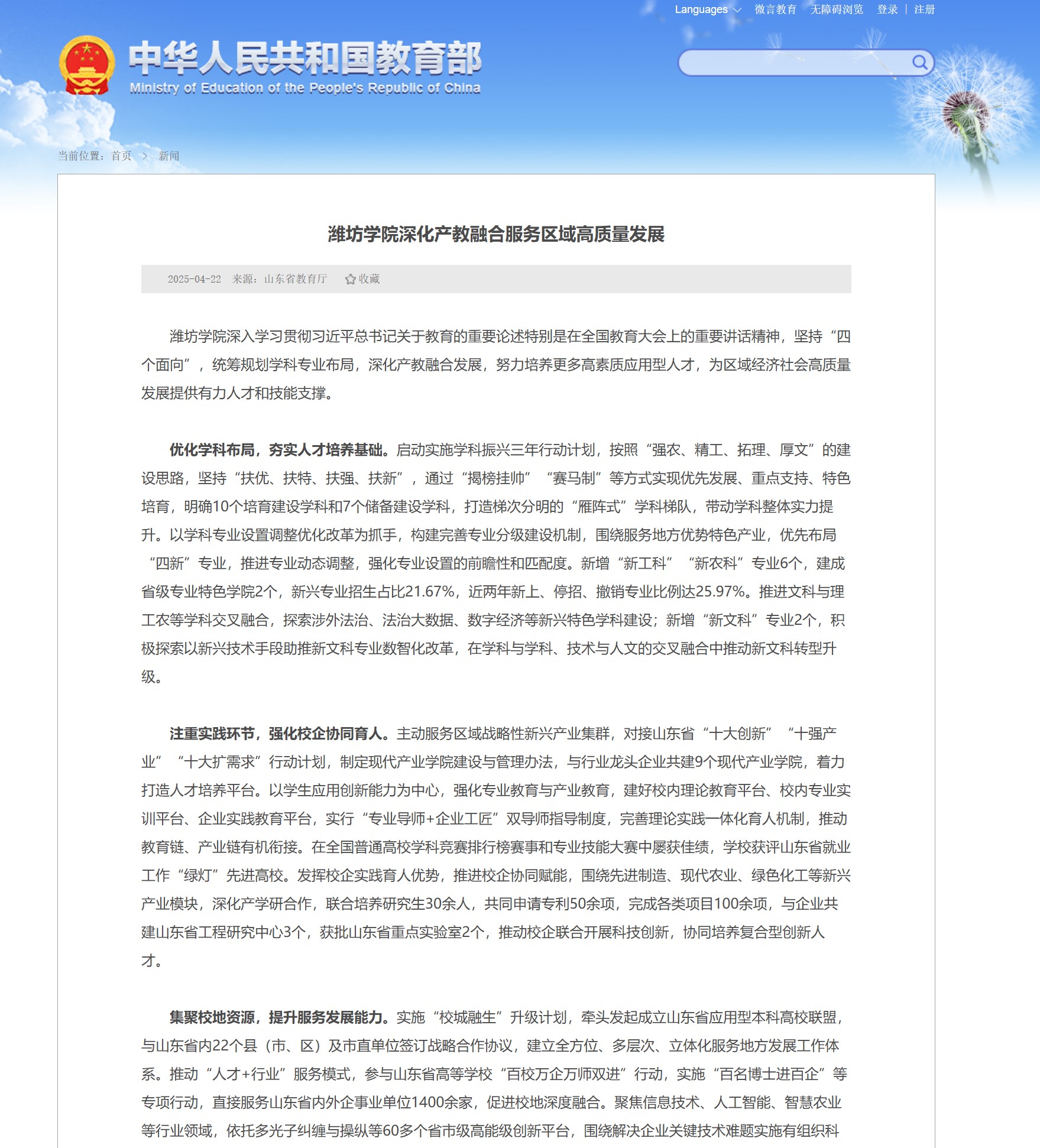 8月25日,濰坊市委、市政府支持濰坊學院建設高水平應用型大學第一次聯席會議在學校召開,標志著校地常態化、制度化協作邁入新階段。