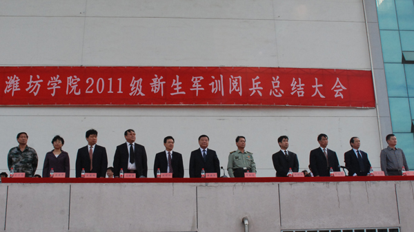 濰坊軍分區政治部主任李樹春大校、濰坊市高新技術開發區人民政府武裝部副部長楊明、學校領導辛丕宏、王守倫、牛鐘順、馮濱魯、邢同學、王清明、丁子信、馬茜華出席大會,各二級學院、各部門主要負責同志參加大會。軍訓團團長張國寶主持閱兵儀式。大會由副院長邢同學主持。