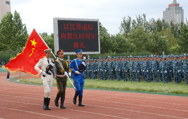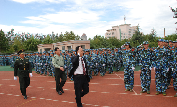 在莊嚴的國歌聲中,閱兵式正式開始。同學們精神抖擻、英姿勃發,用響亮的聲音向首長問好。全體參訓學員軍容整肅、斗志昂揚。院長王守倫在李樹春、張國寶的陪同下,檢閱了參訓的方隊。經歷了嚴格軍事訓練的2011級新生們以颯爽的英姿、嘹亮的口號、整齊的步伐贏得了在場觀眾的陣陣掌聲,充分展現了全體新生昂揚的斗志和蓬勃向上的精神。