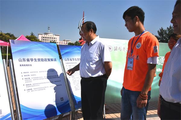 馮濱魯在各學院迎新點和報到處認真查看新生報到情況,了解各學院迎新工作的新舉措,仔細詢問新生來校的感受,并與前來報到的新生合影留念,勉勵他們要珍惜大學的美好時光,心懷理想,奮斗青春,讓濰坊學院成為自己實現夢想的港灣和新起點。在弘德書院,馮濱魯一行仔細查看了新生的住宿情況、生活用品安置情況和周邊生活環境,對新改造公寓樓的安全保障措施仔細詢問,并與新生家長和學生親切交流。在安順校區,王清明到特教幼教師范學院和教師教育學院迎新現場,詢問了新生報到情況,到學生公寓查看新生住宿情況。他特別叮囑學院和安順校區管理辦公室負責同志,要對來自壽光等受災家庭的學生多加關注,給予更多的關懷和幫助。