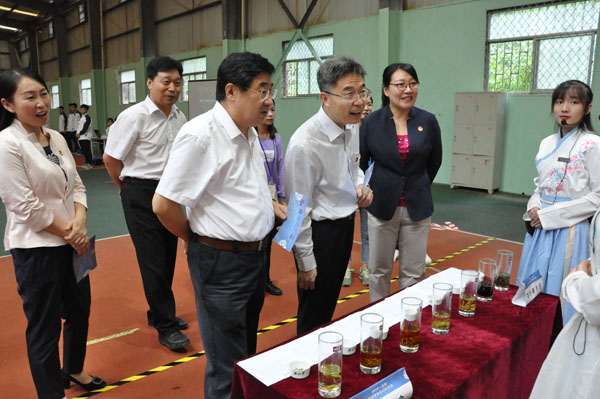 在國學社團青春匯現場,領導們饒有興致的觀看了我校12個國學社團的精彩展示,在每一個社團展位前都仔細傾聽、詳細詢問,與我校學子熱情交談,還親自體驗相關環節。劉少華對我校共青團工作特別是學生社團的建設發展予以充分肯定,為我校大力弘揚優秀傳統文化、特色化吸引學生參與的做法給予高度評價。