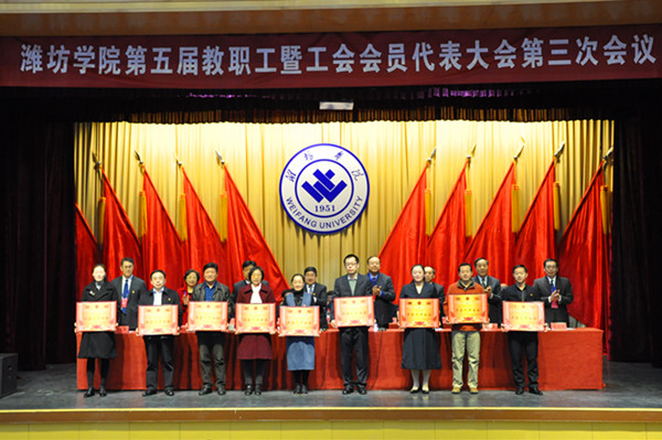 下午,大會表彰了2018年度學校涌現出來的各類先進集體和先進個人,表決通過了《關于校長工作報告的決議》(草案)、《關于工會工作報告的決議》(草案)、《關于2018年度工會經費審查委員會工作報告的決議》(草案)、《關于2018年預算執行情況和2019年財務預算報告的決議》(草案)和《關于<濰坊學院二級教職工代表大會條例>的決議》(草案)。